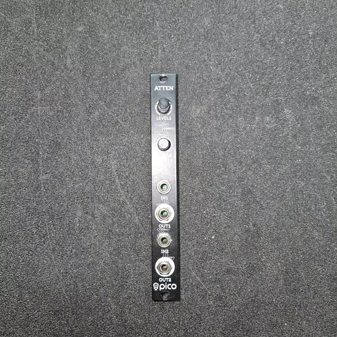 Erica Pico Attenuator is a dual passive attenuator. As several Pico Series modules do not have input or CV level attenuators, Pico Attenuator may be useful to adjust those signal levels.