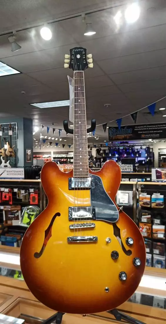 The ES-335 is Epiphone's version of the historic ES-335 that has been wowing guitar players all over the world for over six decades. From its inaugural appearance in 1958, the Gibson™ ES-335 set an unmatched standard. This Epiphone ES-335 is no exception. It is simply one of the best deals today for guitar players who want the classic sound of an ES-335 at an accessible price. The ES-335 is crafted with a layered maple top, back, and sides coupled with a solid maple tone block to create the amazing sustain, warmth, and resonant tone that players crave in a semi-hollow instrument. Epiphone's Alnico Classic PRO™ Humbuckers deliver a wide range of vintage sounds while the rounded C neck profile is extremely comfortable and easy to play, and the headstock features the 60s style Kalamazoo shape.