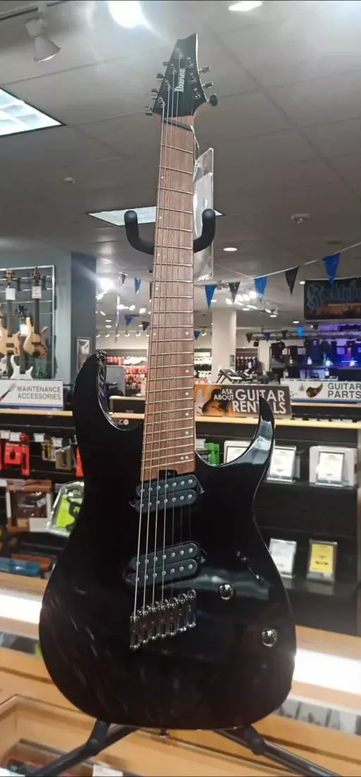 Ibanez is pleased to introduce a RGMS7-BK which features the multiscale. Using the trapezoidal 27"/25.5" scale, the multiscale neck construction provides an equalized tension that creates a lively, open tone. Designed for playability, the slants are matched with the player's hand angles to facilitate quick playing along with the flatling on the 12th fret. By setting the horizontal point close to bridge's side, shredding in high frets is easy.