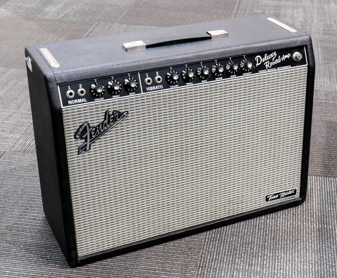 In a bold Fender first, the Tone Master Deluxe Reverb amplifier uses massive digital processing power to achieve a single remarkable sonic feat: faithfully modeling the circuitry and 22-watt power output of an original Deluxe tube amp. Using a high-performance 100-watt digital power amp to achieve the headroom and dynamic range of a real vintage Deluxe tube amp, paired with the pronounced sparkle and clarity of a single Jensen® N-12K neodymium speaker and a resonant pine cabinet, the result is tubeless Deluxe Reverb tone, volume and dynamics virtually indistinguishable from the all-tube original. And with all these features, the Tone Master Deluxe Reverb is in fact about only half the weight of an all-tube Deluxe.