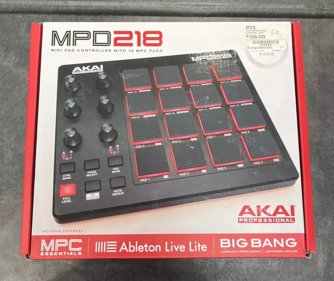 Akai's MPD218 feature-packed, highly playable MIDI-over-USB pad controller is perfect for producers, programmers, musicians and DJs alike. Its intuitive blend of MPC controls and technologies mesh with easy USB connectivity to bring the feel of classic beat making into the world of computer music production.