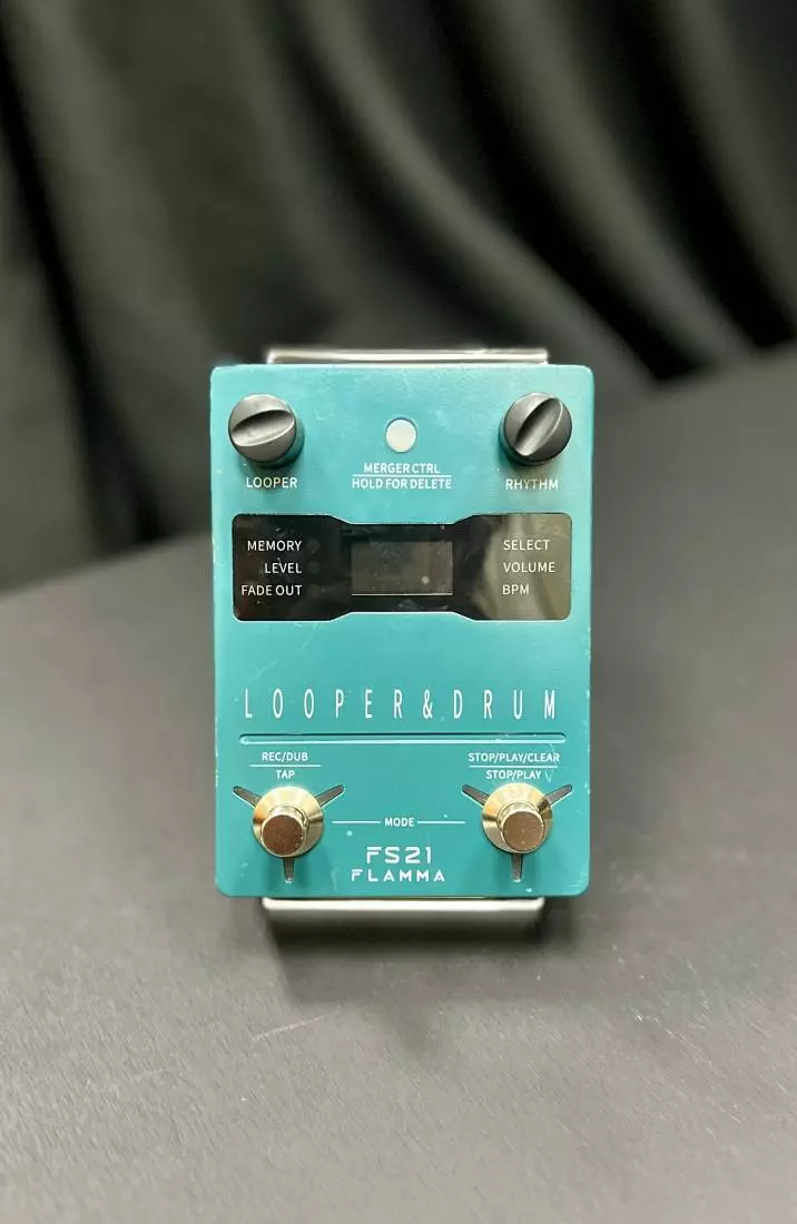 Flamma aims to help new looper users by including robust metronome and drum machine functionality that includes 10 metronome options as well as 100 different drum grooves from 10 different musical styles. To aid in the recording process, the FS21 includes a Looper and Rhythm LED display that allows users to easily control volume levels, looper effects, and storage as well as volume levels, beats per minute, and groove styles for the drum machine. Merger control functions provide syncing of the drum machine and looper for better quality recordings and timing management.