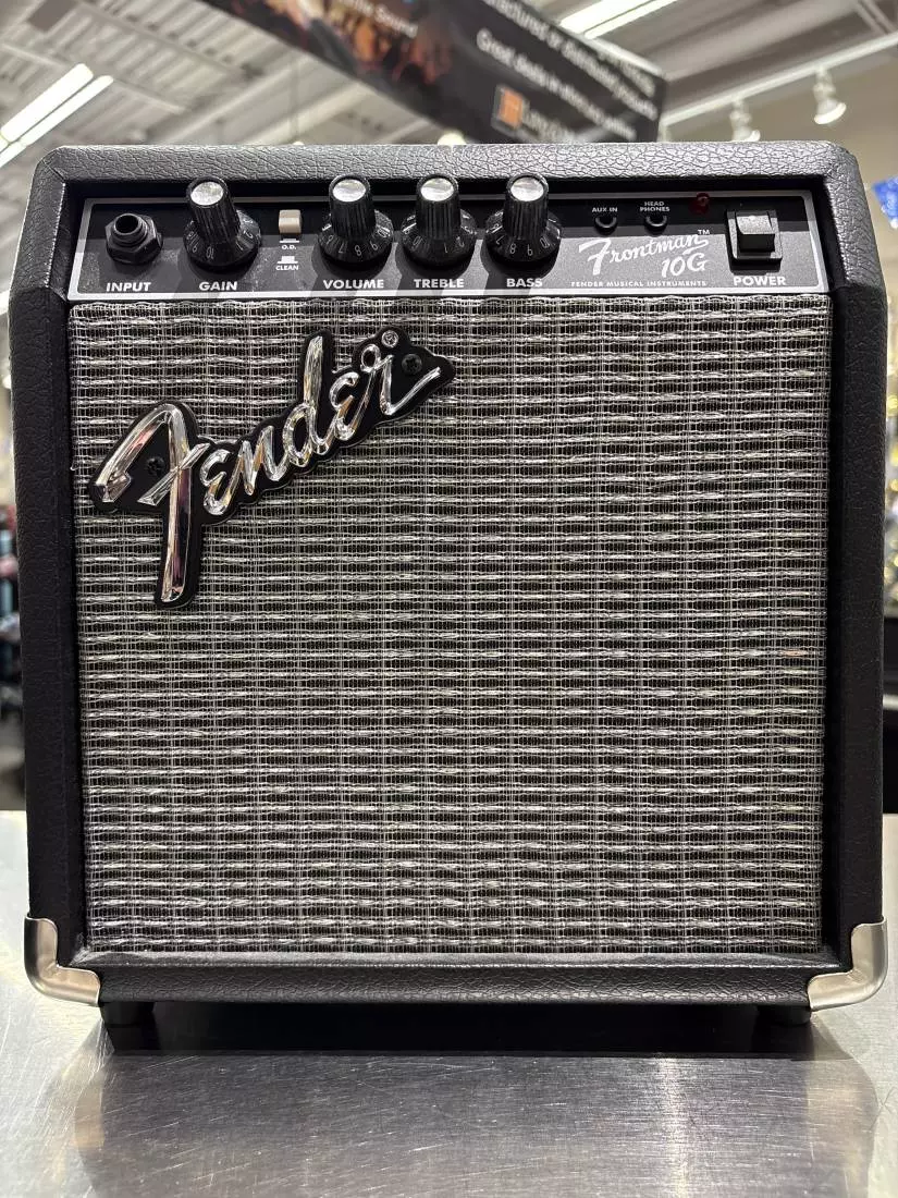 The Frontman 10G is a small, easy-to-use practice amp. The 1/8" auxiliary input jack allows for easy jam alongs with a cd player or other devices with a 1/8" out. This amp packs the famous Fender tone in a small, easy to transport package. Great for beginning and veteran guitarists alike who are looking for a convenient, great sounding amp.