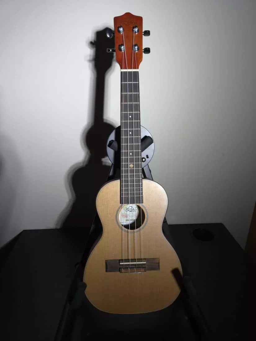 The curly flaming in the Maple series is quite remarkable due to utmost discretion in sourcing the wood materials. This flamed maple is among the best in today's market, with strong grain contrasts all over. The sweet tones of maple complement a hip, fantastic look. Features a classic and smooth sounding cedar top. This thin body travel ukulele also includes an embroidered backpack-style padded case with handle.