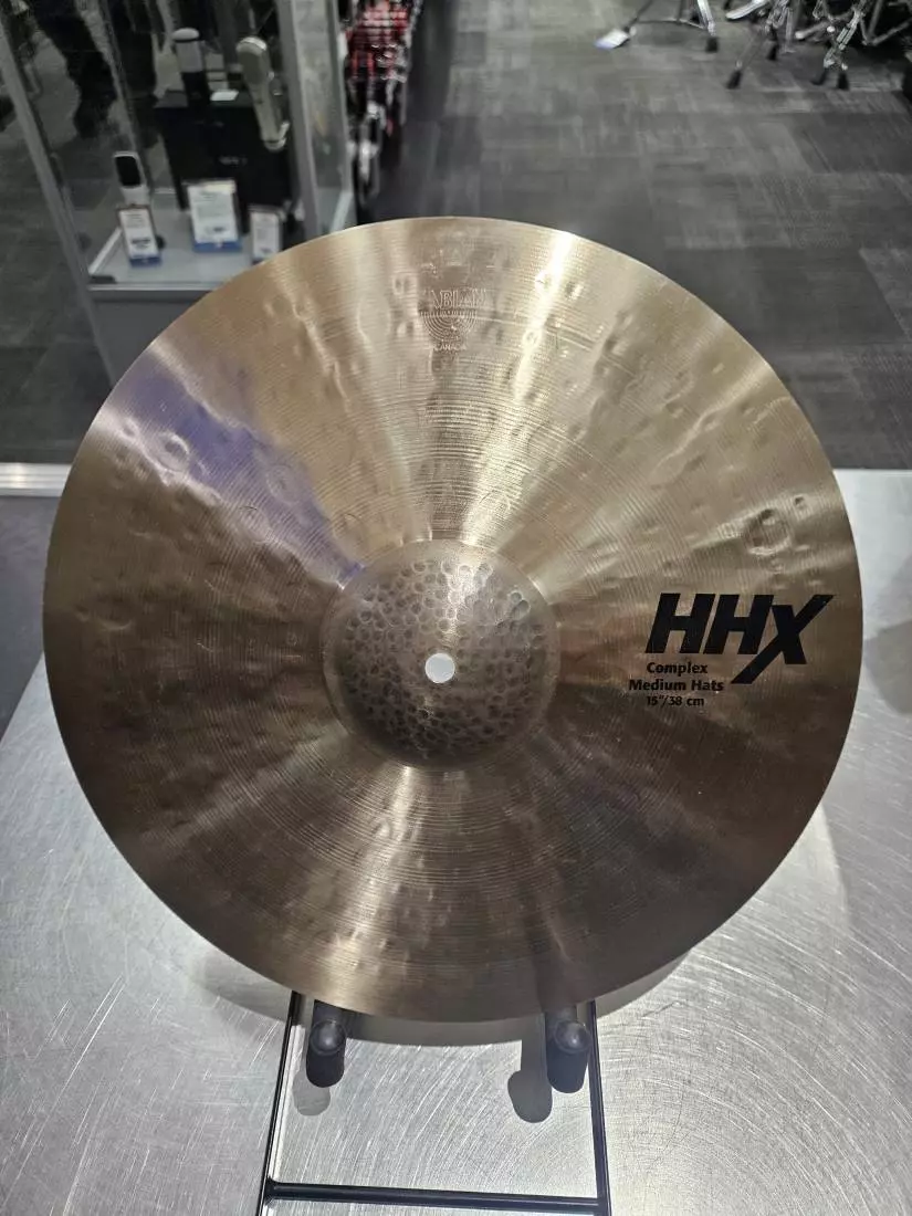 Using trickle down technology gleaned from years of developing some of the world's top selling cymbals lines like Evolution, Legacy, and even Artisan, SABIAN introduces HHX Complex, a new line of exquisitely dark cymbals. The 15" Complex Medium Hats employ a combination of HH and HHX hammering, a raw bell, and a number of the aforementioned proprietary techniques - resulting in one of the richest, fattest set of Hats SABIAN has ever produced. The raw bell design on the over-hammered pairing of a Medium top over a Heavy bottom results in a very solid foot, dark cut when closed, and sizzling fat tone at all times. The versatility to easily cross musical styles has always been a hallmark of the HHX line, and the 15" HHX Complex Medium Hats are no exception.