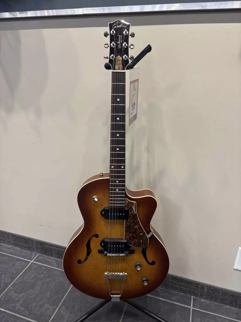 With the soul of a 1950s archtop, the 5th Avenue is a true vintage spirit of yesterday with today's level of modern playability. With more projection & volume in the low/mids than traditional archtop acoustic guitars, the dynamically rich tone of the 5th Avenue makes this sophisticated instrument a dream to play but not a nightmare on your wallet. The Godin 5th Avenue Series now makes the dream of owning an affordable North American archtop a reality! From Alt-Country, Delta Blues, Slide, Jazz to Rock, the 5th Avenue can really deliver both acoustically and electrically.