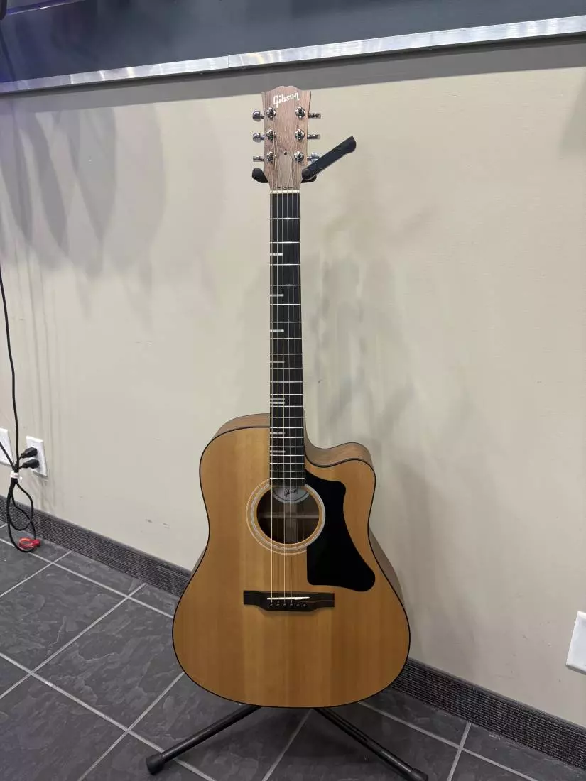 The G-Writer EC is equipped with a Gibson Player Port™. The Player Port is an original Gibson concept from the early 1960s that has been refined by their acoustic luthier team to deliver a truly revolutionary sonic improvement that adds a new dimension to the sound. The Gibson Player Port allows you to hear the guitar as you're playing it like you've never heard it before - the same way your audience hears it - maximizing the sonic impact for an immersive playing and listening experience. The G-Writer EC is part of the Generation™ Collection. Like all models in this collection, it is made in Bozeman, MT, by the same highly skilled craftspeople who make all Gibson acoustics. It features a solid Sitka spruce top and beautiful solid walnut back and sides for tone that sounds crisp and resonant. You'll find that the slightly thinner cutaway body is more comfortable to play, and provides effortless access to the upper frets. The TUSQ® nut and saddle, along with the Grover® Mini Rotomatic® tuners deliver solid tuning stability so you can spend more time playing instead of tuning, and the utile neck with its easy-playing Advanced Response neck profile is so comfortable you won't want to put it down. It also comes equipped with an LR Baggs™ Element Bronze pickup system, so your G-Writer EC will sound as good to your audience as it does to you. A gig bag is also included.