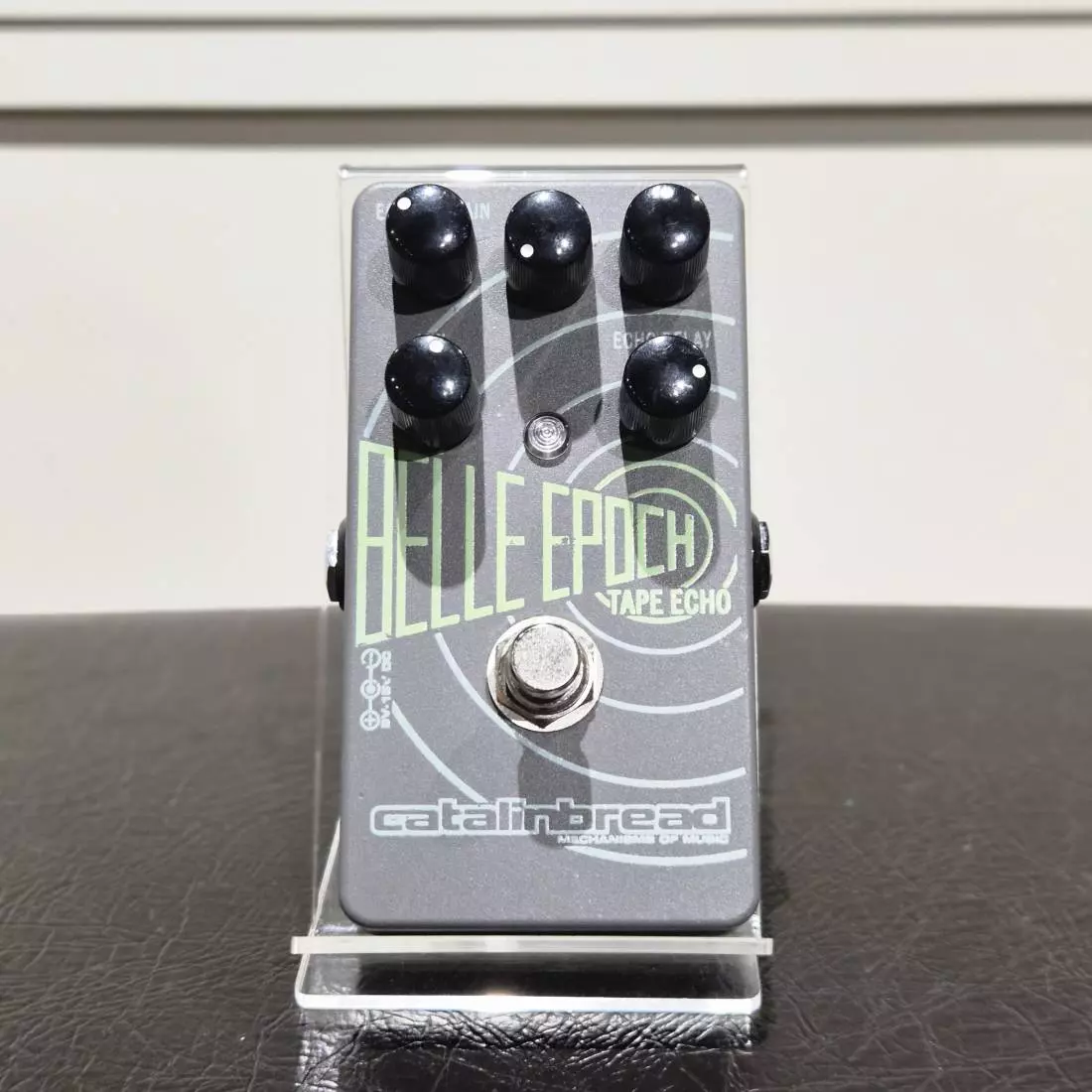 From Catalinbread, "The Catalinbread Belle Epoch Tape Echo, has tape echo sounds so authentic you'd swear there was tape inside the pedal! Inspired by the Maestro Echoplex, EP-3 model, perhaps the most famous tape delay ever, the Belle Epoch features everything we love about the EP-3 in a small, maintenance free pedal format. We felt that a "tape echo" pedal was much more than just a standard digital delay with some "filtering" on the repeats. There are a lot of subtle and not-so-subtle traits of the Echoplex that needed to be implemented in order to be authentic. The preamp, the self-oscillation character, the ability to control the record level of the signal hitting "tape", the wow and flutter, the way the repeats decay, the way the circuit interfaces with the amp and other pedals all these things were important to get right. The original unit was used as a musical instrument unto itself and this is what we captured with the Belle Epoch."