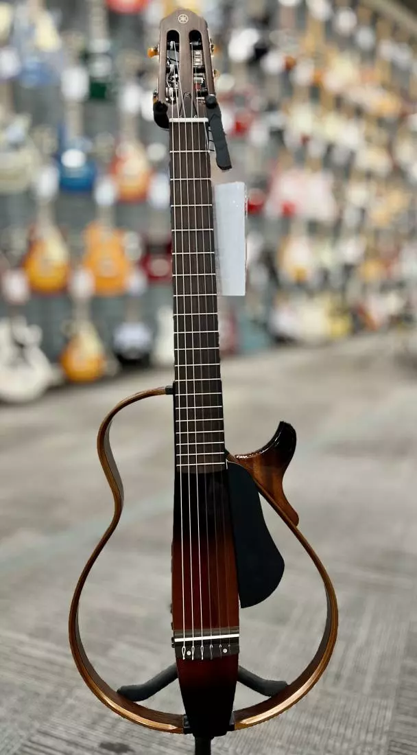The SLG is the perfect instrument for practice, travel or stage use any time an acoustic guitar just won't do. Near-silent performance makes discrete practice simple, Yamaha's exclusive SRT-powered pickup system gives incredibly natural acoustic tone through headphones or line-out, studio-quality on-board effects enhance your playing to perfection, line-in functionality makes jamming easy. Coupled with unique, striking looks and a rosewood and maple framed full-size collapsible body SLG lets you play whenever and wherever inspiration hits.