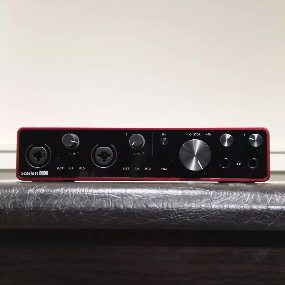 The Scarlett 8i6 is the compact studio solution you've been looking for, allowing you to keep all your hardware plugged in and ready to go: set up mics, guitars and synths to start creating as soon as inspiration strikes. With improved A-D and D-A conversion, your recordings and playback will sound clear and pronounced up to 24-bit/192kHz and two independent high-fidelity headphone outputs with dedicated volume control enable flexible monitoring during recording and mixing.