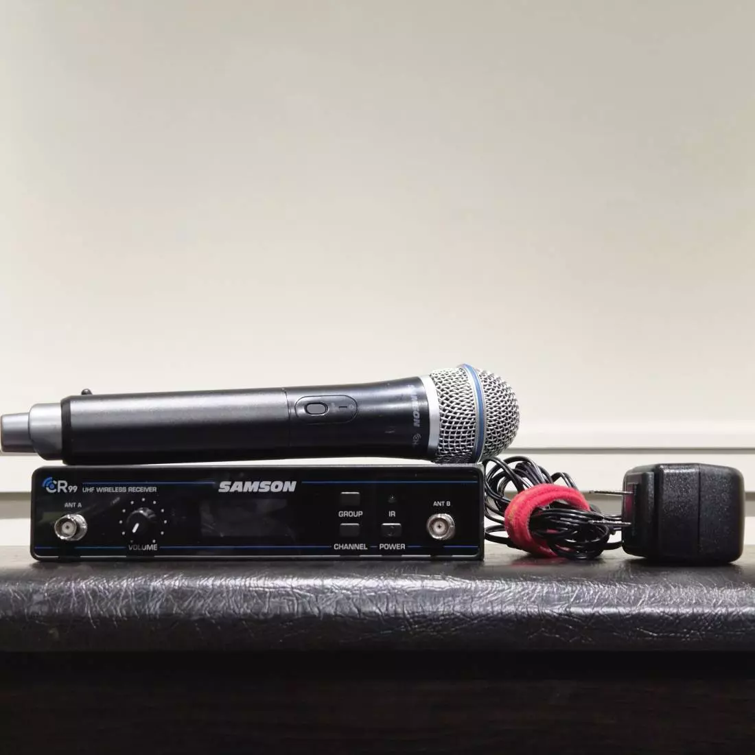 Samson's Concert 99 Handheld combines 80 channels of high-definition audio and extreme reliability into a rugged all-metal, rack-mountable chassis with a stage-ready backlit display. With simple 1-touch setup, convenient monitoring, a 300' UHF operating range and impressive transmitter battery life, this frequency-agile system offers unprecedented value to singers, business professionals, educators and others in search of reliable wireless freedom.