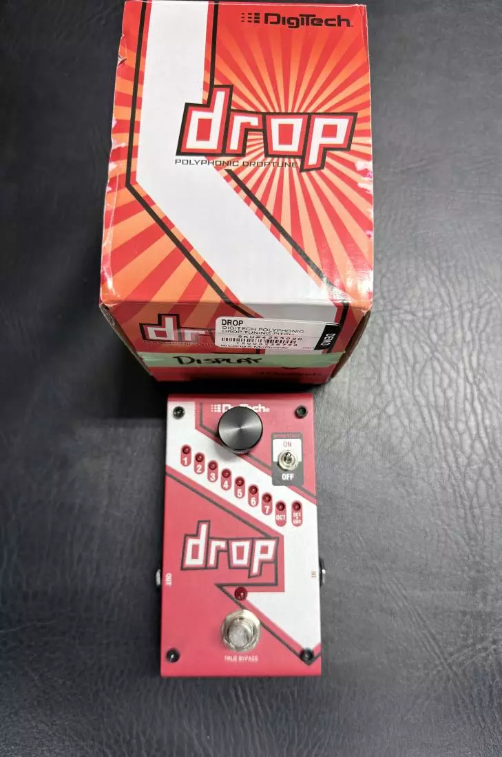 The DigiTech Drop is a dedicated polyphonic drop tune pedal that allows you to drop your tuning from one semitone all the way down to a full octave. Get down-tuned chunk without having to change guitars! The Drop also features a momentary/latching switch. With the switch set to momentary, you can turn the Drop into a true performance pedal. Fast trills and roller-coaster pitch dips are at the tip of your toes.