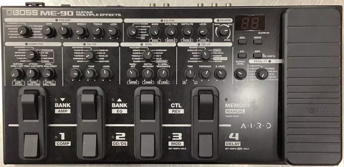 With its knob-driven interface and diverse effects selection, the ME-90 lets you build configurations and tweak tones with the ease of a stompbox-filled pedalboard - without the hassle of fastening tape, power distribution, and multiple connection cables. Just dial up an amp model or effect type within a category and turn the knobs to get the sound you want. There are 36 preset patches with ready-to-play pro tones, plus 36 user patches for storing your custom creations.