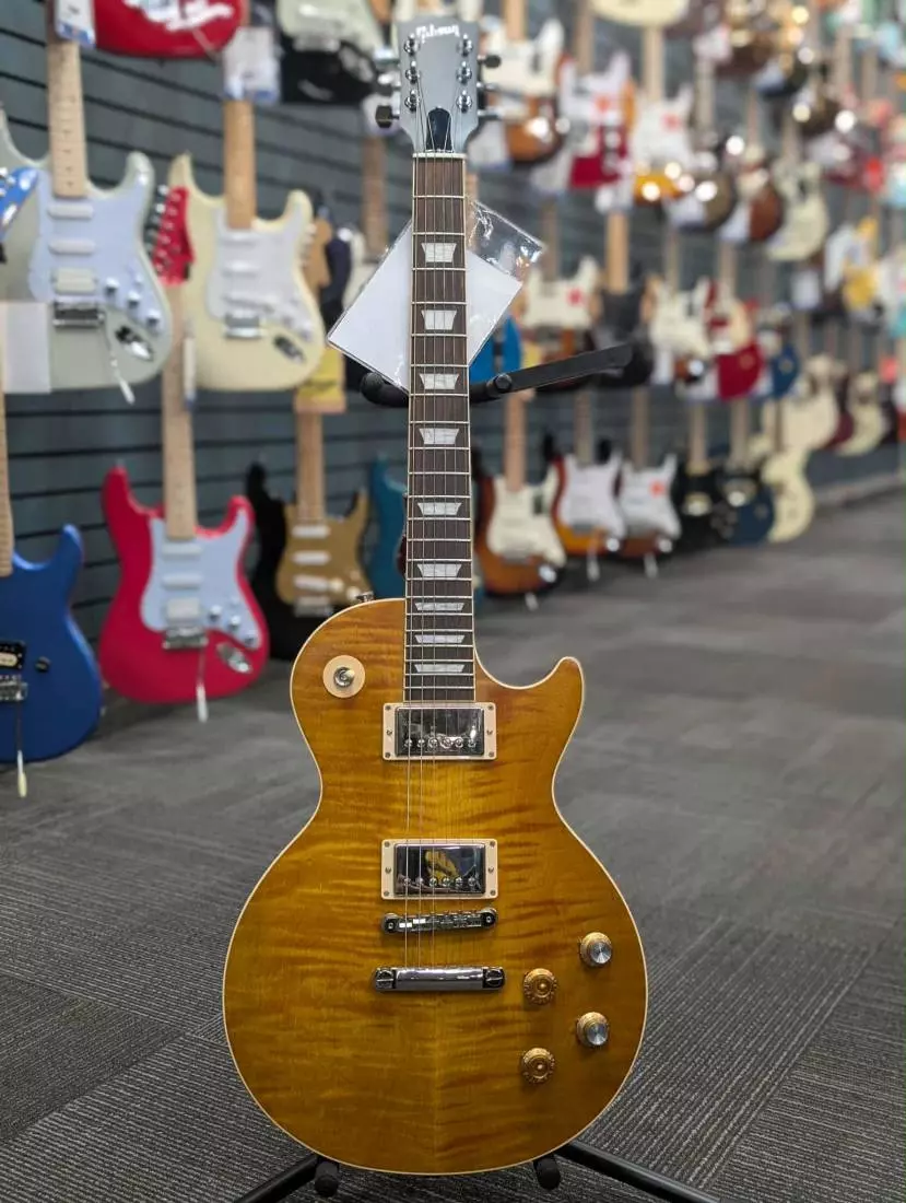 The story of "Greeny" is shrouded in mystery, but few guitars are as illustrious. Greeny is one of the most iconic original Les Paul Standards ever made, with a unique sound as recognizable as the guitar itself. Previously owned by Peter Green, it was used throughout his time with Fleetwood Mac and later sold to Gary Moore, who used it for three decades with Thin Lizzy and as a solo artist. Now owned by Kirk Hammett, Greeny has passed through the hands of three legendary guitarists. Its distinctive sound is partly from the out-of-phase middle switch position due to the neck pickup's reversed magnetic polarity. The Kirk Hammett "Greeny" Les Paul Standard was inspired by this legendary guitar and gives players around the world the opportunity to experience some of the magic of "Greeny" for themselves. An Original Series hardshell case is included.