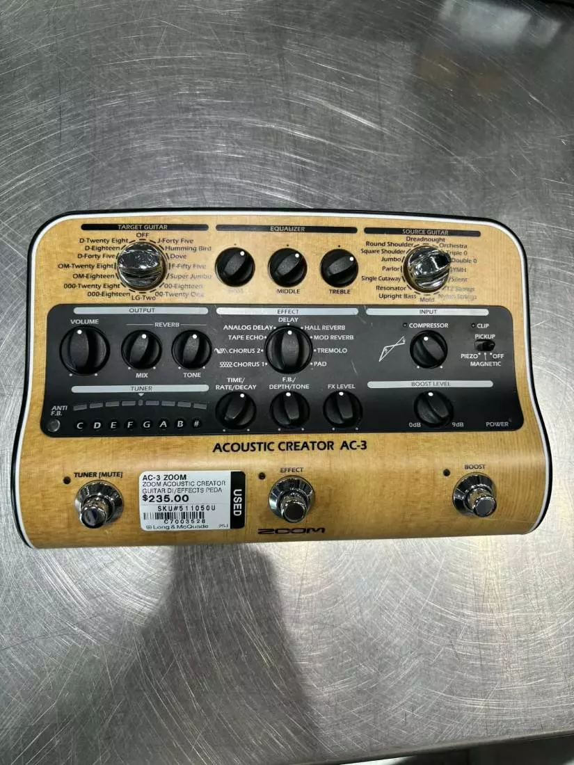 The AC-3 Acoustic Creator is an enhanced direct box with essential DI features that help you achieve great tone no matter where you play. The AC-3 is equipped with an effects generator, stereo outputs, and a compressor. With these features plus the same high-quality preamp and 3-band EQ as the AC-2, the AC-3 is an all-in-one acoustic toolkit that's perfect for live performance and studio.