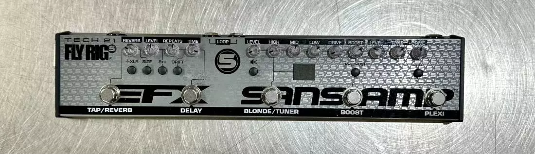 The Fly Rig 5 v2 retains the same SansAmp heart, Plexi/Cali distortion and Delay, but adds a few twists and turns within these sections. New features include an independent reverb with choice of room size, an effect loop, a tuner, and an XLR Output.