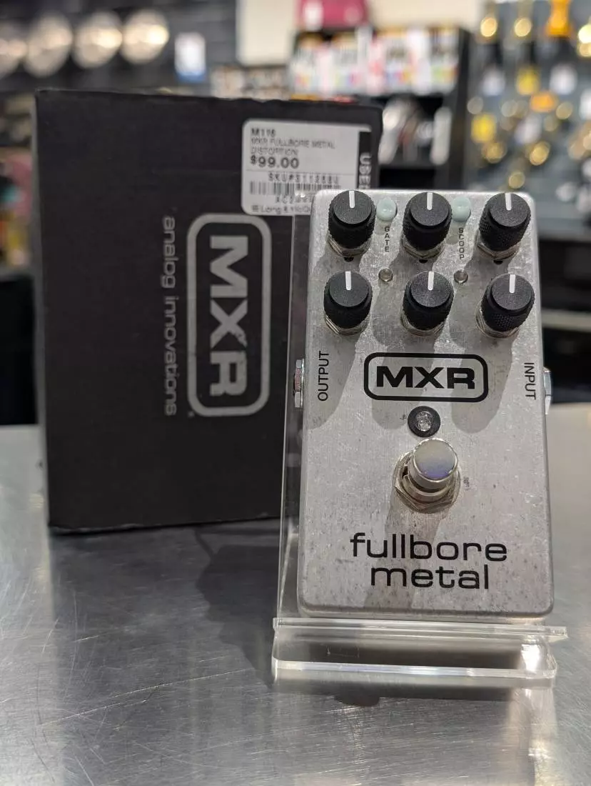 Ultimate riff power is yours with the FullBore Metal Distortion pedal from MXR. This compact but powerful device is all you need to unleash the most devastating contemporary metal guitar tones ever heard. The FullBore pedal turbo-charges your guitar signal with lethal amounts of ultra high gain. This is combined with a built-in Noise Gate to knock out the noise associated with extreme gain levels while also adding definition and tightness to syncopated metal riffs.