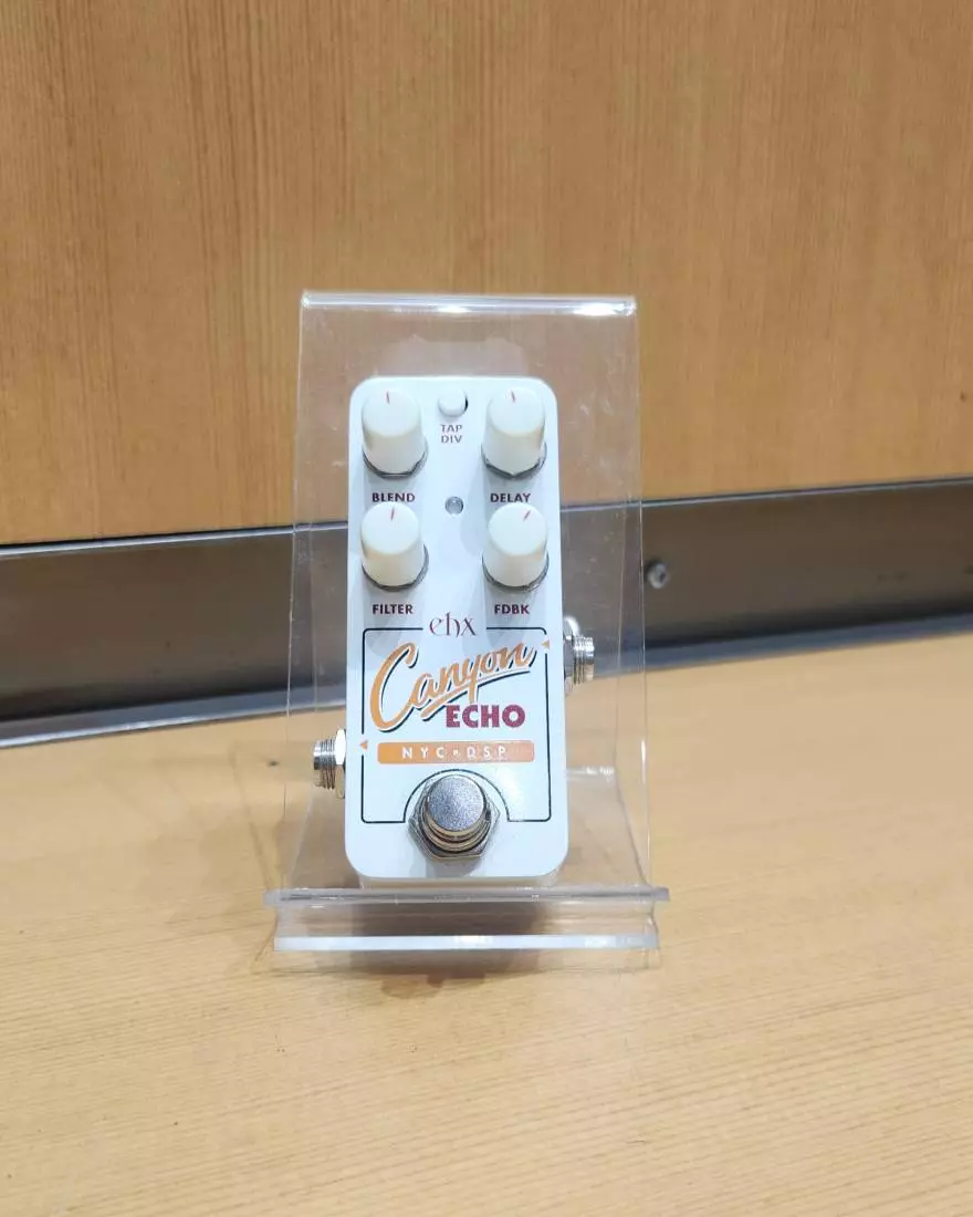 The EHX Pico Canyon Echo takes the digital delay from the award-winning Canyon Delay and Looper and plates it up as a single serving echo unit. Starting with a crystal clean delay, the Canyon Echo is a sweetly simple delay with 3 seconds of delay time. Don't let the size fool you, this canyon is deep! Add filtering, tap tempo, and a feedback knob capable of infinite repeats and this little echo is up to most time bending tasks.