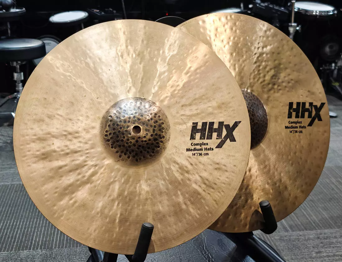 Using trickle down technology gleaned from years of developing some of the world's top selling cymbals lines like Evolution, Legacy, and even Artisan, SABIAN introduces HHX Complex, a new line of exquisitely dark cymbals. The 14" Complex Medium Hats employ a combination of HH and HHX hammering, a raw bell, and a number of the aforementioned proprietary techniques - resulting in one of the richest, fattest set of Hats SABIAN has ever produced. The raw bell design on the over-hammered pairing of a Medium top over a Heavy bottom results in a very solid foot, dark cut when closed, and sizzling fat tone at all times. The versatility to easily cross musical styles has always been a hallmark of the HHX line, and the 14" HHX Complex Medium Hats are no exception.