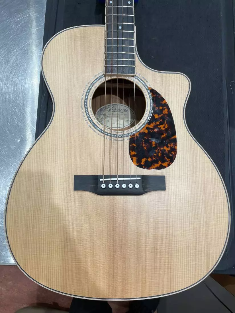 The 03 Mahogany Series is built from solid African Khaya mahogany, kiln dried for maximum tone. Maple bound trim, herringbone purfling, rosette and satin finish are standard features on 03 Series. Like their top-end models, this series also features a hand-fit dovetail neck joint for superior fit and sustain. The L.R. Baggs 'Stagepro Element' makes this guitar performance ready. With onboard volume, EQ, notch filter, and chromatic tuner, you are ready to hit the stage with complete control.