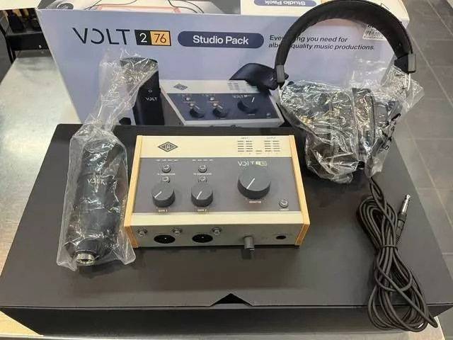 Volt Studio Packs are the perfect way to jumpstart your home recording studio. Capture your music productions, livestreams, and podcasts with Universal Audios 2-in/2-out Volt 276 recording interface, featuring a Vintage Mic Preamp and built-in 76 compressor for classic studio sound.