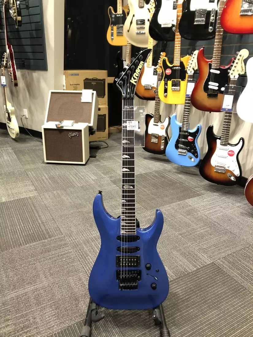 The new SM-1 is part of Kramer's Original Collection and introduces the Kramer name to a new generation with a double-cutaway mahogany body, ebony fingerboard, Seymour Duncan® Cool Rails™ and JB™ humbucker pickups, a Floyd Rose® 1000 series tremolo, and a Floyd Rose® R2 1000 series locking nut. Available in Candy Blue, Orange Crush, and Maximum Steel.