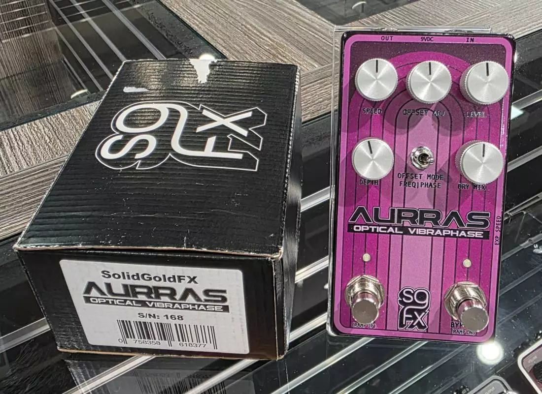 The Aurras Optical Vibraphase by SolidGoldFX-a powerful effects pedal named after the goddess of sound, meets the legacy of its predecessor the Athena Vibraphase in a harmonious blend of legendary, vintage Uni-Vibe textures and innovative, modern prowess.