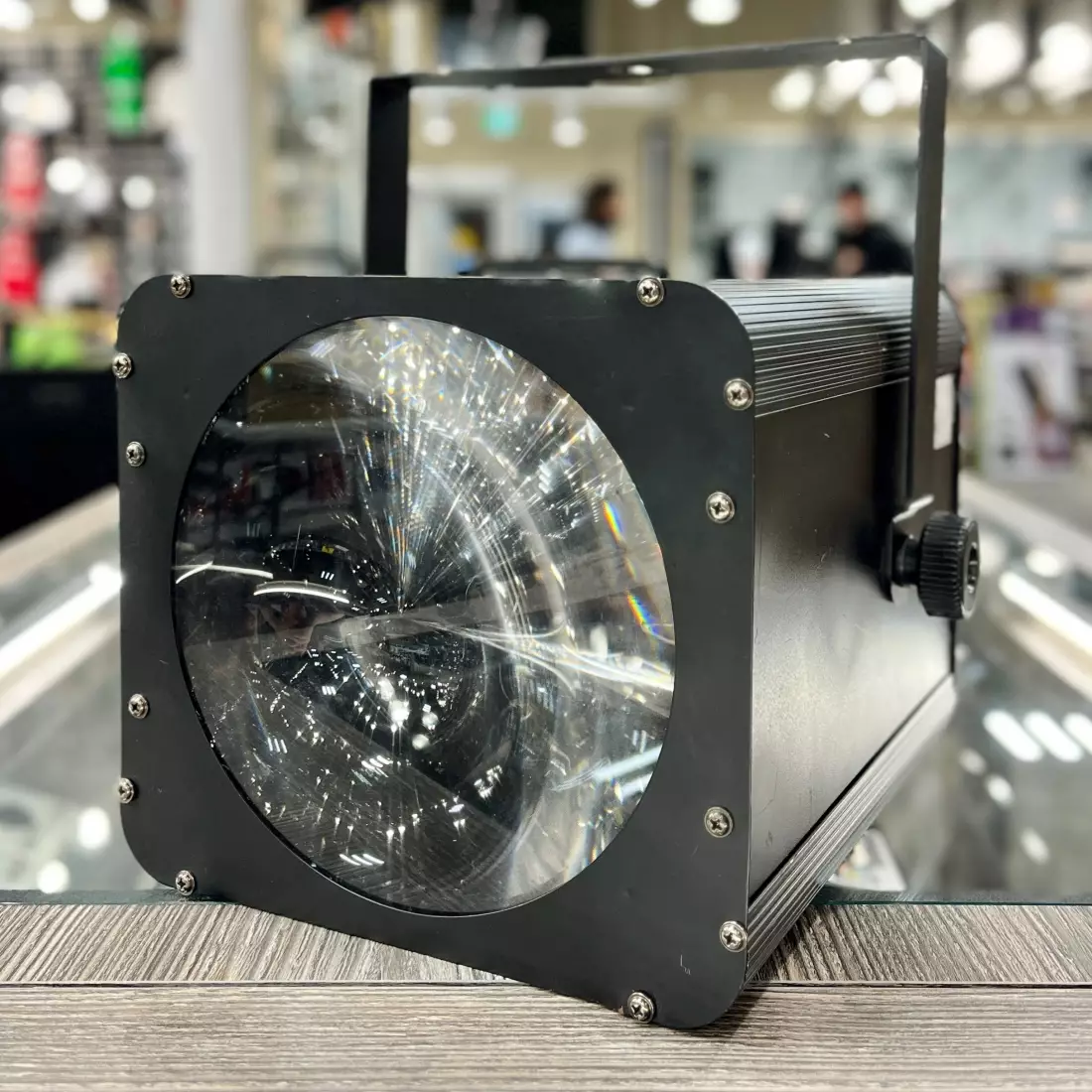 Wide beam angle and large, bright multicolor LED based patterns ensure the UltraCyclops can function as a single light effect for small to medium sized venues, or act as a central fixture in larger, more complex lighting set ups. The UltraCyclops will operate as a standalone unit (either sound active or preset), or via DMX.