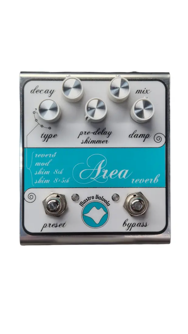 The new Mastro Valvola Area MkII has all the same features of first Area multi reverb, with the addition of the innovative “Timed Bypass System”, designed by Mastro Valvola, to manage the reverb trails.