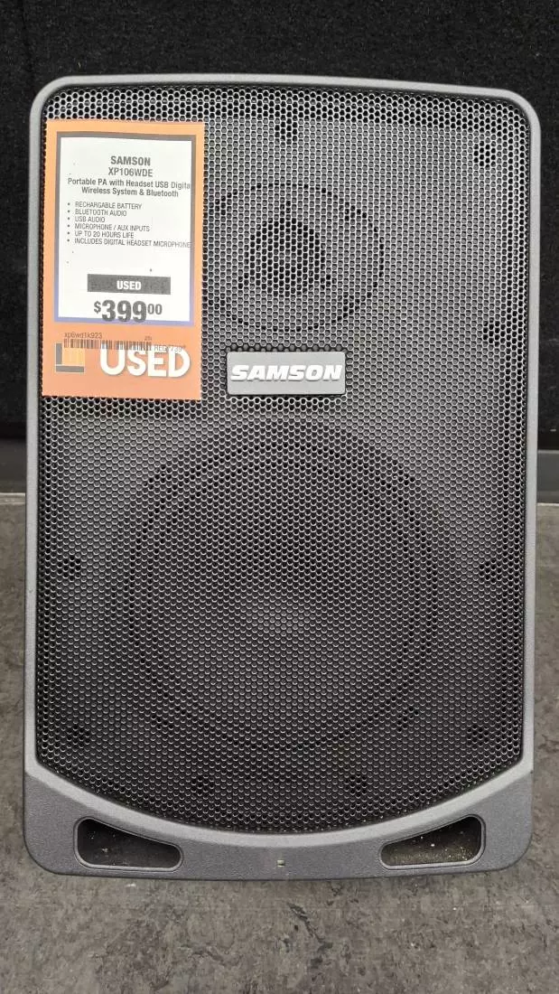Samson's Expedition XP106wDE Rechargeable Portable PA is a completely wireless lightweight speaker system that satisfies the sound reinforcement needs for classrooms, conferences, tour groups, parties and more. Weighing just 16 pounds with 100 watts of power, the XP106wDE also includes a headset USB digital wireless system, Bluetooth connectivity and 20-hour internal rechargeable battery.