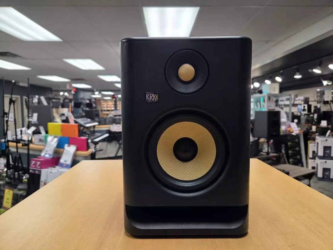 The new 5" KRK ROKIT RP5 G4 (Generation 4) bi-amp professional monitor takes music and sound creativity to a whole new industry-level. DSP-driven Graphic EQ with 25 settings help condition your acoustic environment while offering new levels of versatility in a studio monitor. Matching drivers made with Kevlar® ensures the same sonic integrity across all frequencies. A new scientifically designed speaker enclosure and front-firing port offer exceptional low-end extension and accuracy, punch and flexible room-positioning. The new powerful, yet efficient custom Class D power amplifier drives the speakers evenly and more efficiently at reduced operating temperatures and improves audio integrity.