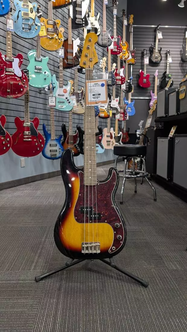 A tribute to the decade that made the P Bass® an icon, the Classic Vibe '60s Precision Bass embodies the aesthetics of the original and produces massive tone courtesy of its Fender-designed alnico split-coil pickup. Player-friendly features include a slim and comfortable "C"-shaped neck profile with an easy-playing 9.5"-radius fingerboard and narrow-tall frets, as well as a vintage-style bridge with threaded saddles. This throwback Squier model also features 1960s inspired headstock markings, nickel-plated hardware and a slick vintage-tinted gloss neck finish for an old-school aesthetic vibe.