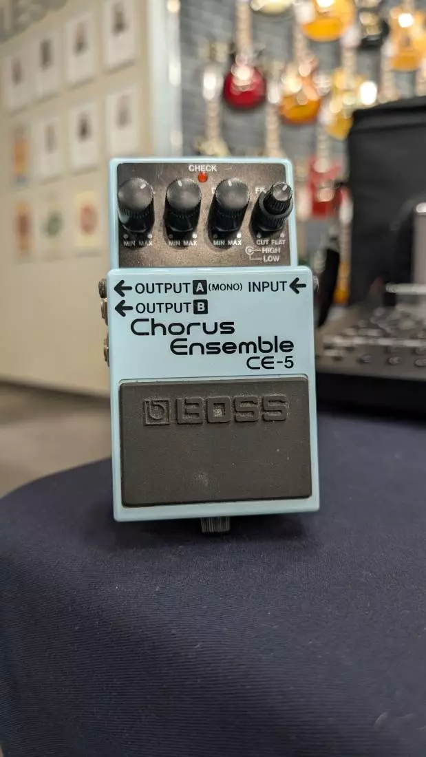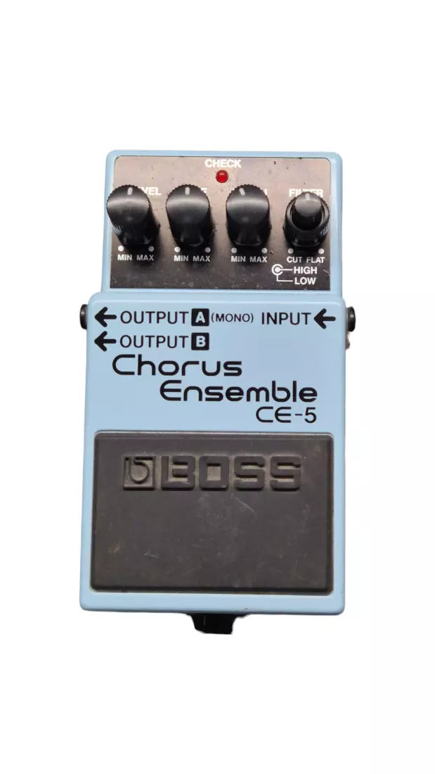 The CE-5 Chorus Ensemble is BOSS' ultimate compact chorus pedal, covering a wide frequency range and featuring high- and low-cut filters. This lets users create any kind of chorus effect--from a mild, natural chorus to the clear and penetrating stereo chorus effect popular in contemporary music.