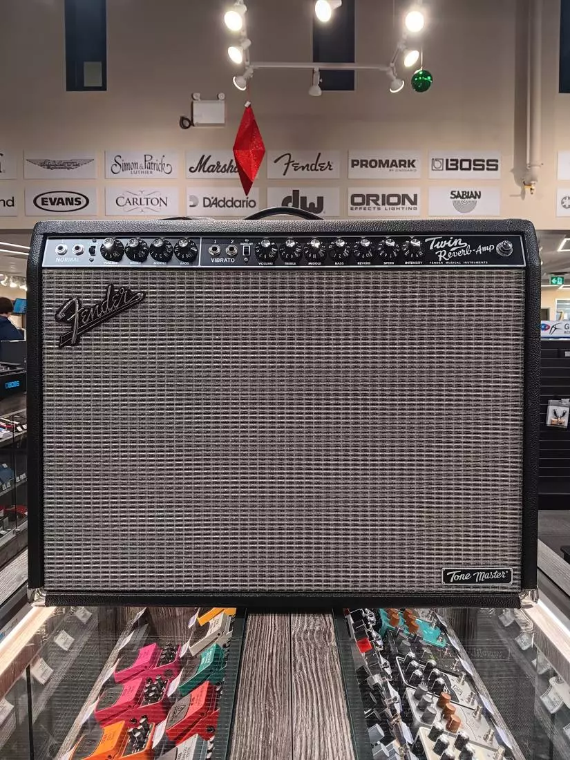 In a bold Fender first, the Tone Master Twin Reverb amplifier uses massive digital processing power to achieve a single remarkable sonic feat: faithfully modeling the circuitry and 85-watt power output of an original Twin tube amp. Using a high-performance 200-watt digital power amp to achieve the headroom and dynamic range of a real vintage Twin tube amp, paired with the pronounced sparkle and clarity of two Jensen® N-12K neodymium speakers and a resonant pine cabinet, the result is tubeless Twin Reverb tone, volume and dynamics virtually indistinguishable from the all-tube original. And with all these features, the Tone Master Twin Reverb is in fact about only half the weight of an all-tube Twin.