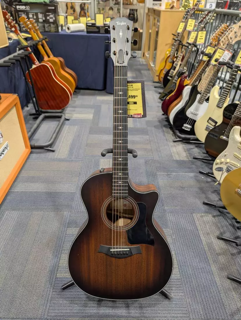 Featuring solid mahogany back, sides and top, the Grand Auditorium 324ce serves up a remarkably balanced tone profile in a package that also offers a relaxed feel. The slender Taylor neck and comfortable body shape make it easy to get the most of this model's warmth and midrange focus, which also yields a smooth attack thanks to the hardwood top's natural compression effect. Perfect for recording applications but with enough power for live play alongside other musicians, the 324ce is ready for virtually any musical scenario. And with built-in ES2 electronics and an included hardshell case, you're ready to go wherever your music takes you.