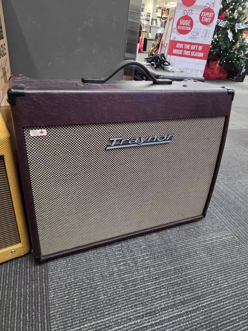 The Canadian-made YCV40WR is very much the same electronically as the award-winning YCV40, but with upgrades such as rich, wine red leatherette covering, matching oatmeal grille cloth over a metal mesh grill and Celestion's renowned Vintage 30 speaker. Combined, these upgrades help give the YCV40WR a rich "boutique" look, sound and feel while maintaining the channel-switching versatility that helped sweep Traynor back into the forefront of the tube amp world in 2000.