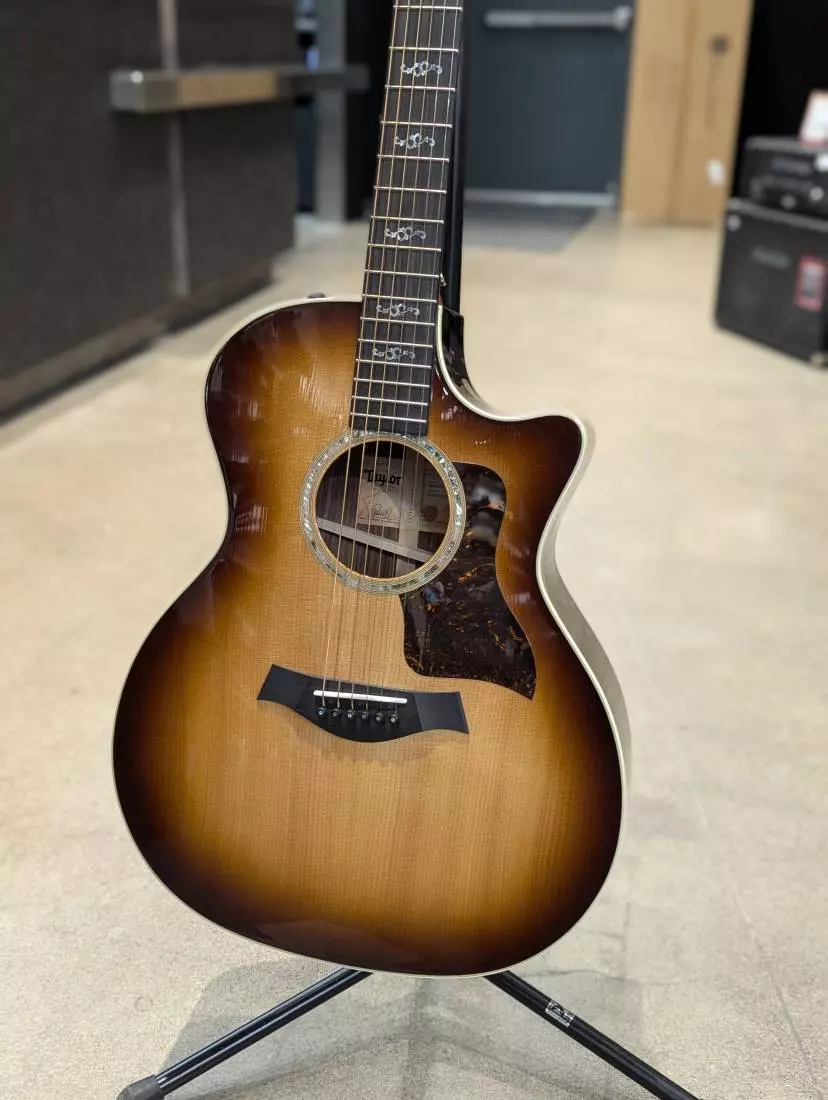 Long & McQuade is pleased to bring you this Special Edition Taylor 414ce guitar with rosewood back and sides, and a host of custom elements. The acoustic/electric Grand Auditorium 414ce-R Special Edition responds well to an array of playing styles thanks to Taylor's flagship body shape and the classic pairing of rosewood and spruce. Rosewood lends a lively overtone sparkle to the treble notes, while the guitar's overall voice delivers a pleasing mix of warmth and tonal definition. Whether you like to strum, flatpick or play fingerstyle, this guitar makes an inspiring playing partner. Custom features include grained ivoroid binding, "Engraved Victorian" fretboard inlays, abalone rosette, and shaded edge burst finish. The guitar comes equipped with Taylor's Expression System 2 acoustic electronics along with a Venetian cutaway, and ships in a Taylor deluxe hardshell case. Also available in left handed model.