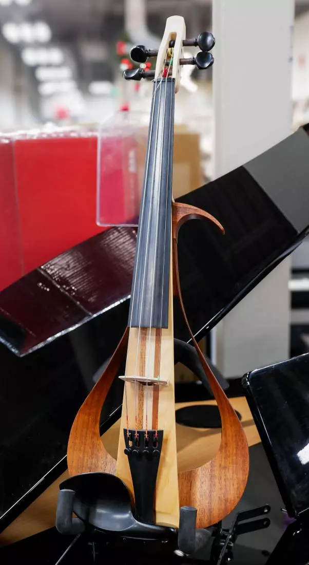 Inspired by craft and design elements of Yamaha acoustic guitars, Yamaha set out to design a new kind of electric violin made primarily from wooden materials. This instrument takes a design cue from both violin and acoustic guitar shapes, creating a beautiful yet amazingly lightweight instrument made with six different woods. These wood materials are carefully crafted with an airy infinity loop-like design, representing the dimensions of acoustic space, and is as stunning visually as it is fun to play. Using a unique Yamaha bridge pickup that carries over from professional Yamaha Silent Violins, this instrument delivers a smooth, organic and warm tone. The design incorporates a simple 1/4" input to match the clean and natural aesthetic of this innovative electric violin.