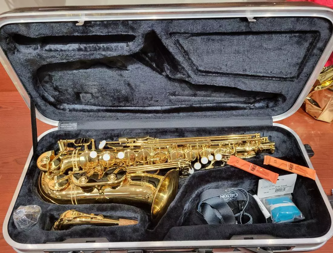 Exclusive to Long & McQuade, this student alto saxophone offers excellent quality and great value. It has a durable lacquer finish, smooth key action and a great tone. The Carlton alto sax comes with a molded ABS case and is perfect for the beginning player.