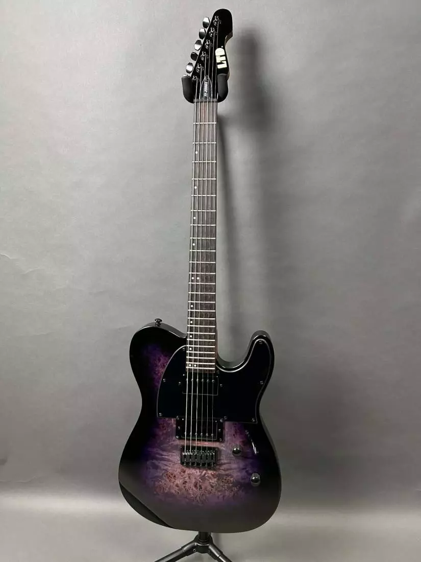 LTD's DX range allows for musicians to get access to a high-quality guitar at a price far less than its impressive features would imply. The TE-200DX is an excellent and very affordable option for getting the classic LTD TE shape with features for contemporary guitarists. These include a lightweight and comfortable poplar body with an elegant birdseye maple top, and a roasted maple neck with rosewood fingerboard, offset dot inlays, and 24 extra-jumbo frets. The TE-200DX also features a hardtail bridge, black chrome hardward, black body binding, and a tiltback headstock. The TE-200DX includes a set of our acclaimed ESP LH-150 humbucking pickups with matching black chrome covers in the bridge and neck positions, providing punchy, great tone for all genres of music. You also get the flexibility of single-coil tones controlled by a push-pull switch on the tone knob.