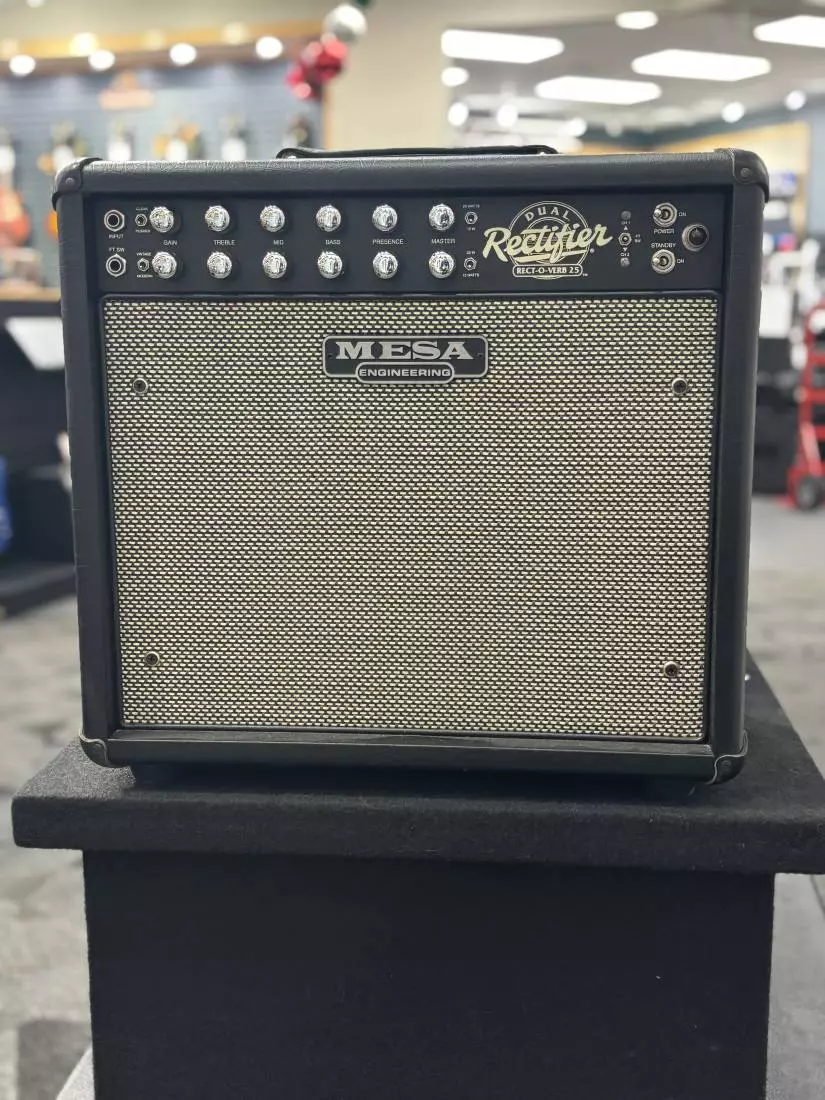 Introducing the Recto-Verb Twenty-Five 1 x 12 Combo, the Reverb-endowed, fraternal-twin of Mesa's little Mini Rectifier lunchbox thats been taking names all over the globe. This even mightier package is slightly larger - long-spring Reverb tank and boast all the same great performance that the Mini Rec is famous for and more. Plus, the classic vinyl-covered birch cabinet provide a wide array of custom finish options to fully personalize them.