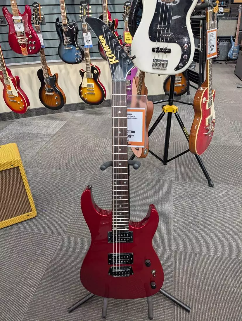 The Kramer Baretta helped define rock & metal guitar as we know it. Ideal for your shredding needs! With Seymour Duncan pickups and a neck through build, the guitar is designed for versatility.