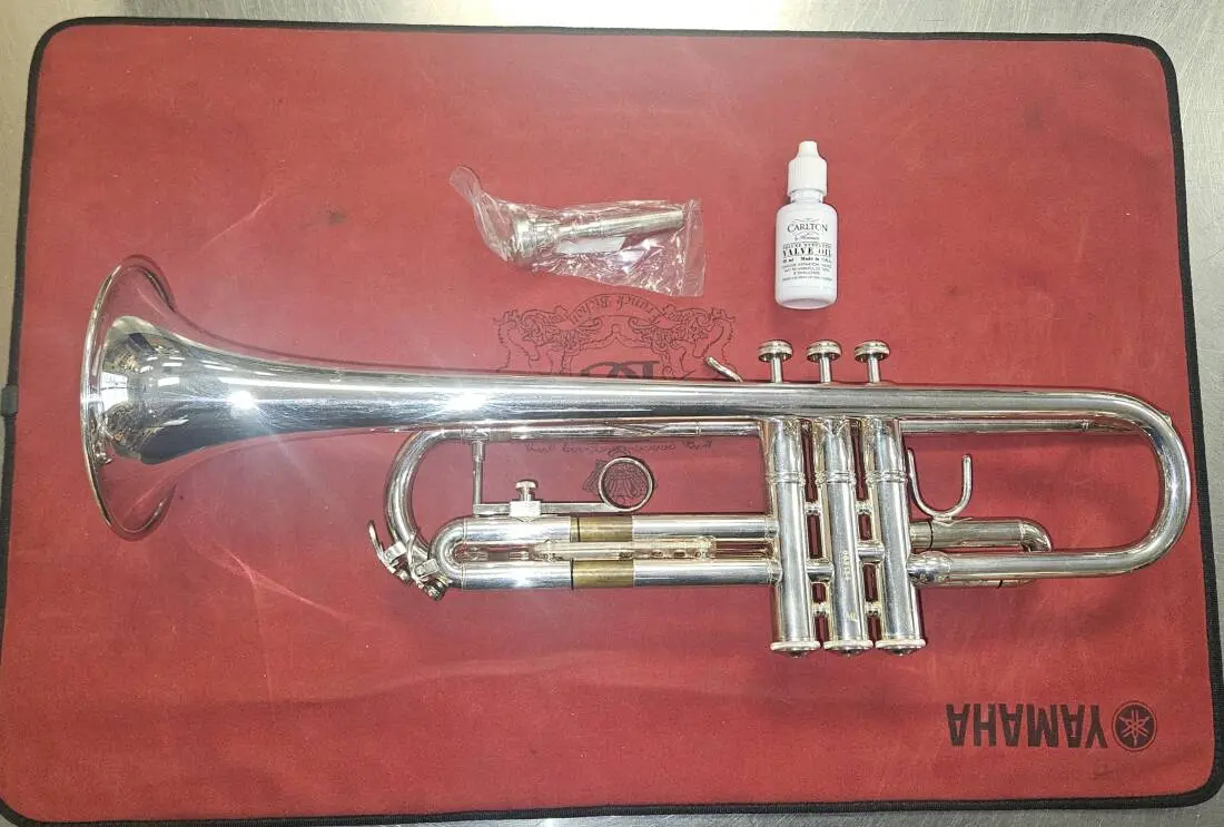 Included case is a Bach Stradivarius gig bag style case (pictured). Mouthpiece is a Bach 5C.