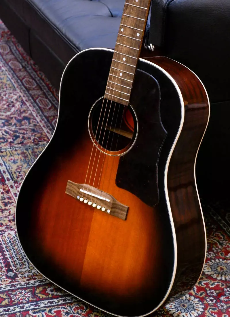 The classic J-45 has been the choice of legendary musicians ever since it was first introduced in 1942. Known as The Workhorse, it is Gibson's most famous and most popular acoustic guitar model. Now Epiphone has released a new Inspired by Gibson™ J-45™ with all of the features players want, including all solid wood construction, a comfortable rounded C neck profile, 20 medium jumbo frets, the 60s style Kalamazoo headstock shape and a gorgeous Aged Vintage Sunburst finish. The Fishman Sonicore™ under-saddle pickup and Sonitone™ preamp make this Workhorse stage-ready too.
