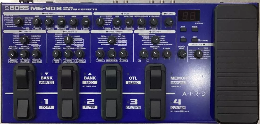 Introducing the ME-90B, a free-flowing ME processor filled with pro performance tools for bassists. Extend your creative range with 61 effects optimized for bass. Shape your core tone with 10 bass preamps crafted with our latest AIRD technology. Connect to stage amps, house PA systems, and computers. And with the hands-on interface, expression pedal, and direct-access footswitches, you can create and perform in the moment with nothing to slow you down.