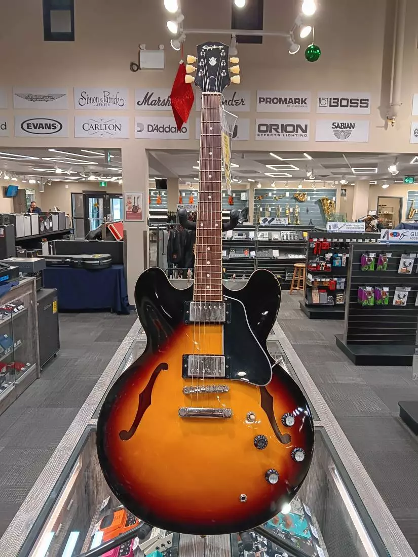 The ES-335 is Epiphone's version of the historic ES-335 that has been wowing guitar players all over the world for over six decades. From its inaugural appearance in 1958, the Gibson™ ES-335 set an unmatched standard. This Epiphone ES-335 is no exception. It is simply one of the best deals today for guitar players who want the classic sound of an ES-335 at an accessible price. The ES-335 is crafted with a layered maple top, back, and sides coupled with a solid maple tone block to create the amazing sustain, warmth, and resonant tone that players crave in a semi-hollow instrument. Epiphone's Alnico Classic PRO™ Humbuckers deliver a wide range of vintage sounds while the rounded C neck profile is extremely comfortable and easy to play, and the headstock features the 60s style Kalamazoo shape.