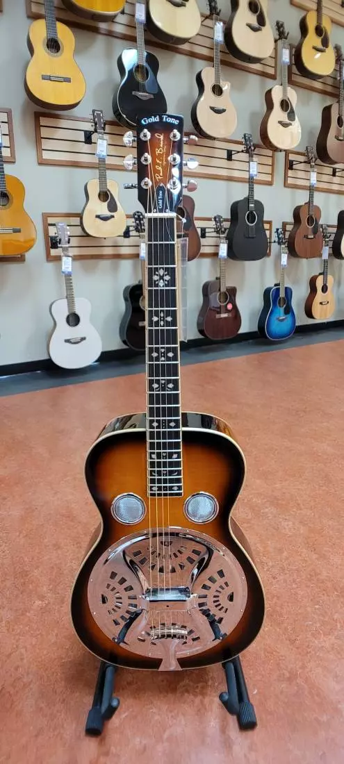 The PBR Deluxe has a striking curly maple body and a hard rock maple neck, all finished in a rich tobacco sunburst. The fretboard is inlayed in the vintage hearts & flowers motif. The Deluxe is equipped with the famed Paul Beard "open" soundwell, resonator cone and spider bridge. This combination produces the sweet wood-and-metal tone that's so ideal for country blues and fingerstyle solos. Available as left-handed model.