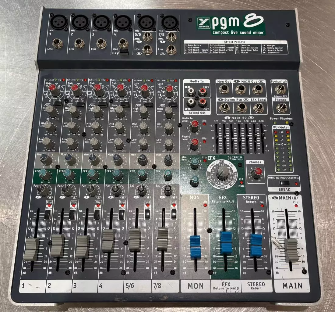 The Yorkville PGM8 delivers all of the essential features needed in a professional mixer in a convenient, ultra-compact package. High quality 60mm faders throughout, effective fully featured input channel design, 24-bit digital effects, and break switch make the PGM8 the perfect mixer for live music applications and for small installs.