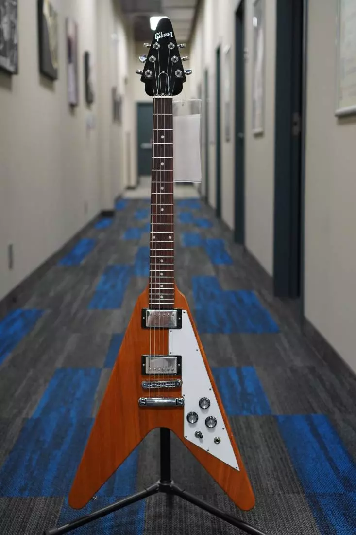 Introduced in 1958 and only made in limited quantities, the Gibson Flying V has taken flight over the years along with legions of followers. This Flying V carries heritage to new heights. The Antique Natural finish, mahogany body and slim taper neck with rosewood fingerboard provide classic looks, sound and playability. A special set of calibrated Burstbucker 2 (neck) and Burstbucker 3 (bridge) pickups provide that perfect mix of volume, tone and power.