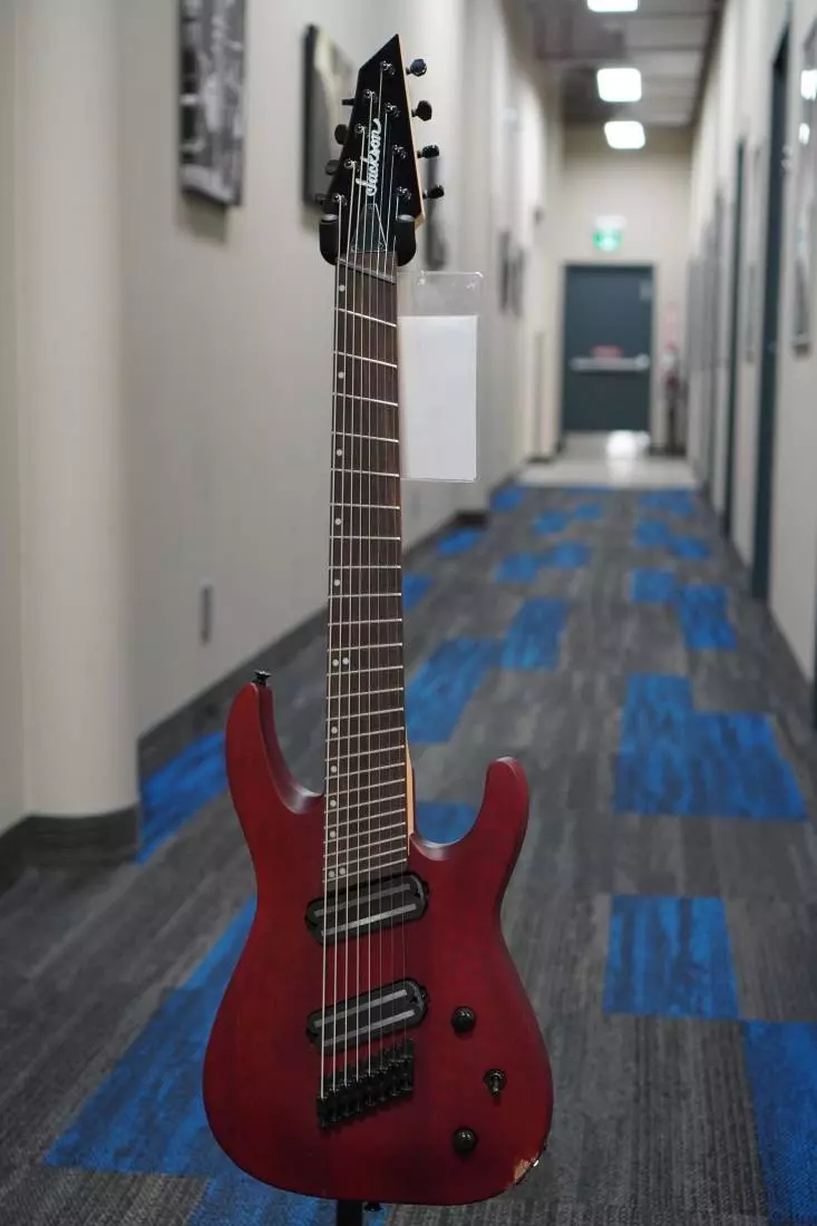 The DKAF8 MS features a 26"-28" multi-scale length, mahogany body with an arched top, one-piece bolt-on maple neck with graphite reinforcement and scarf joint, 12"-16" compound radius fingerboard with 24 jumbo frets and offset white dot inlays, Jackson die-cast tuners and 4x4 AT-1 headstock.